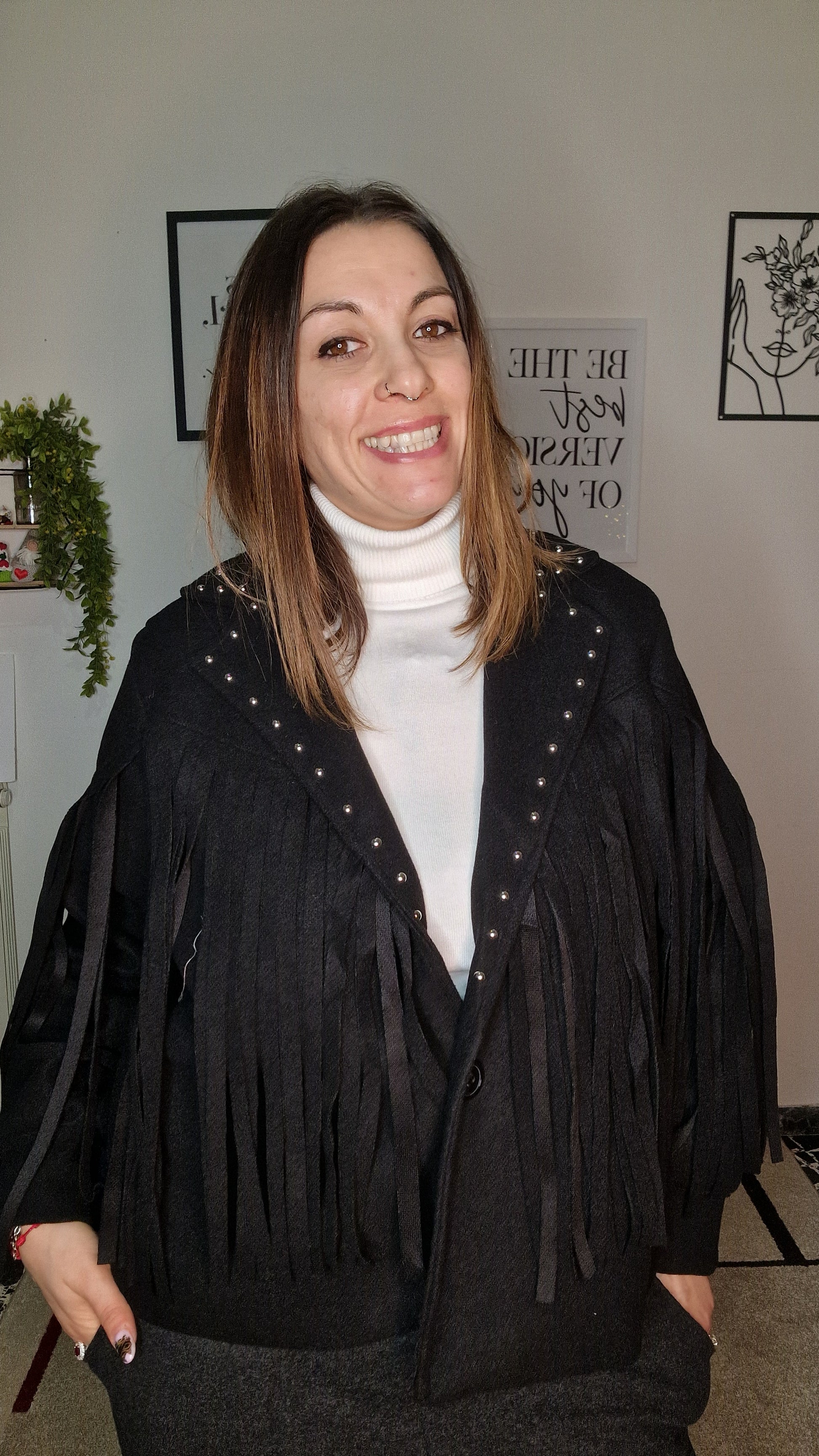 Lasciati conquistare dal fascino magnetico della nostra giacca Artemide. Un capo che fonde l'eleganza intramontabile del taglio sartoriale con l'energia vibrante delle frange, pensato per la donna che non vuole passare inosservata ma esige il massimo del comfort.