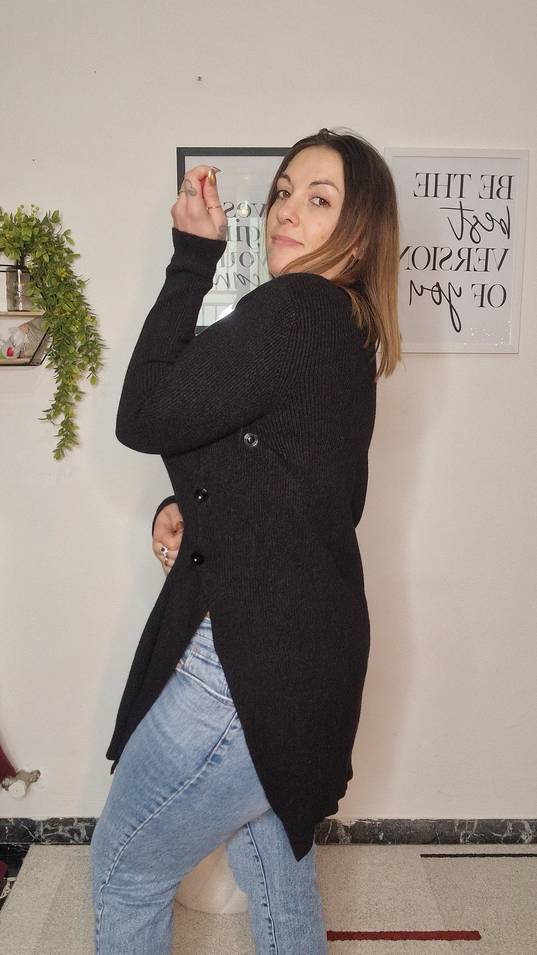 Vestibilità Modella: La modella in foto veste una taglia 48/50.