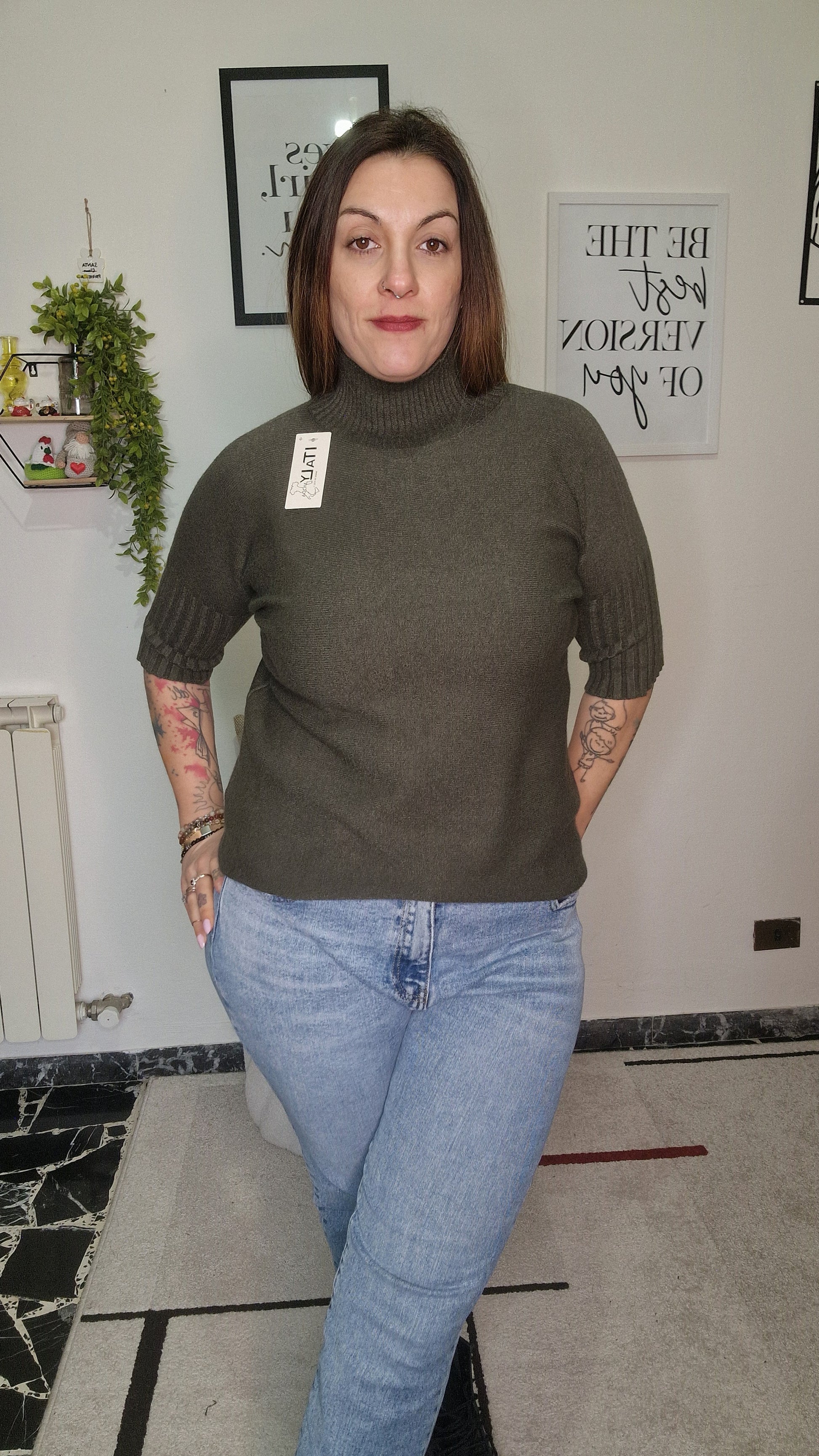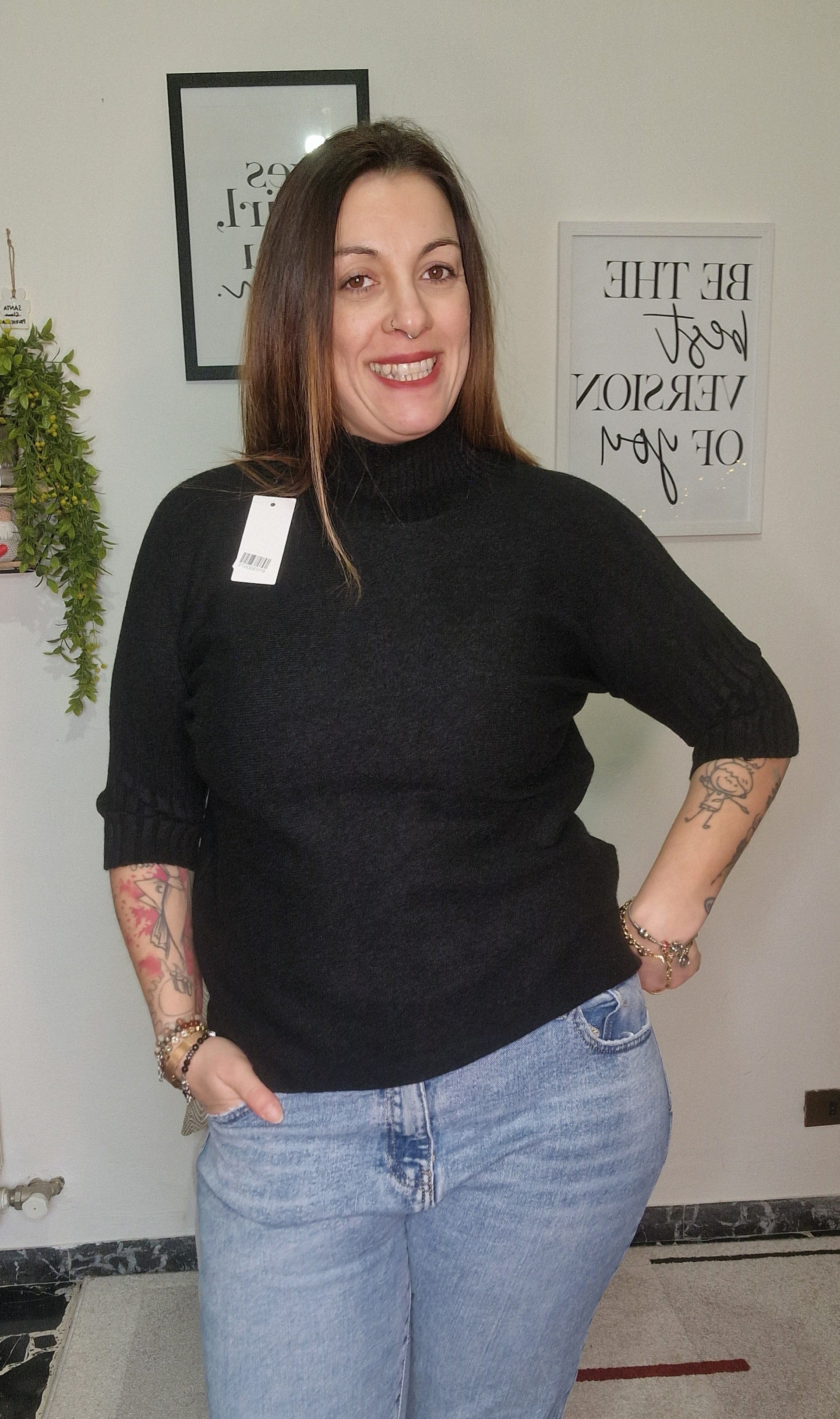 La Maglia Lupin è l'essenza del minimalismo raffinato. Caratterizzata da un elegante collo alto e maniche a tre quarti con un delicato dettaglio a costine sul bordo, questa maglia è pensata per chi cerca un capo basico ma dalla vestibilità superiore. Realizzata in un mix di viscosa, poliestere e nylon, offre una texture incredibilmente soffice e setosa sulla pelle.