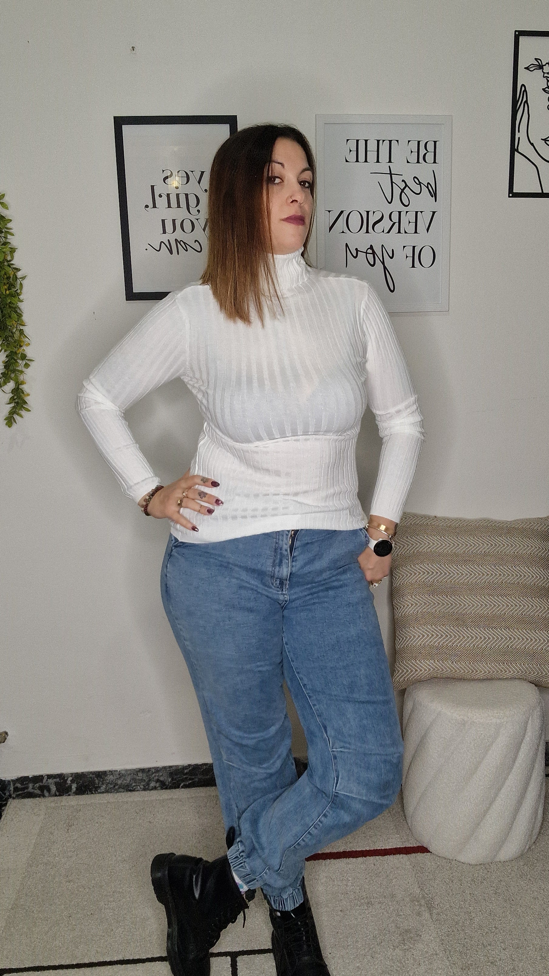 Design: Modello a costine (ribbed), maniche lunghe, collo alto.