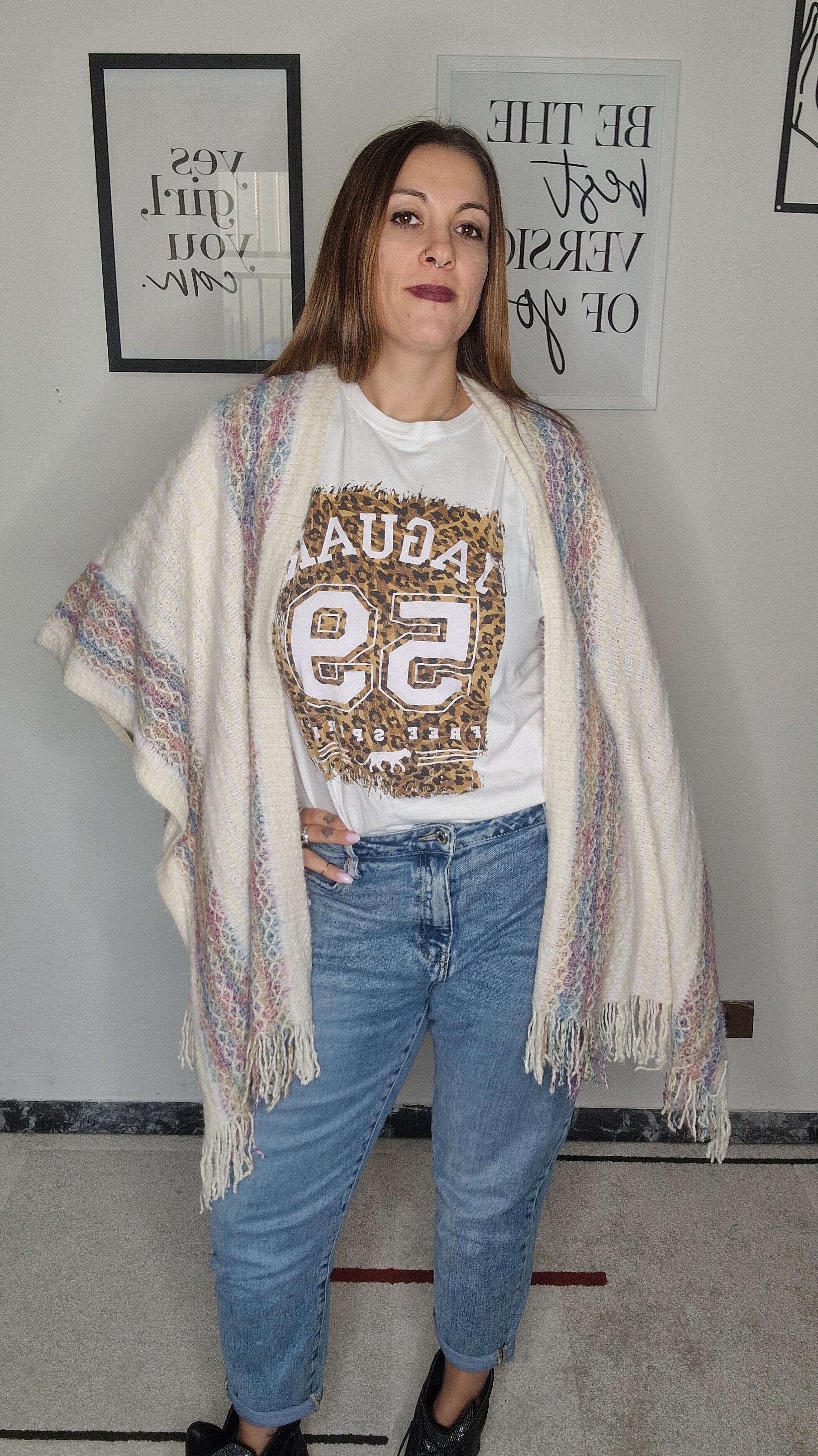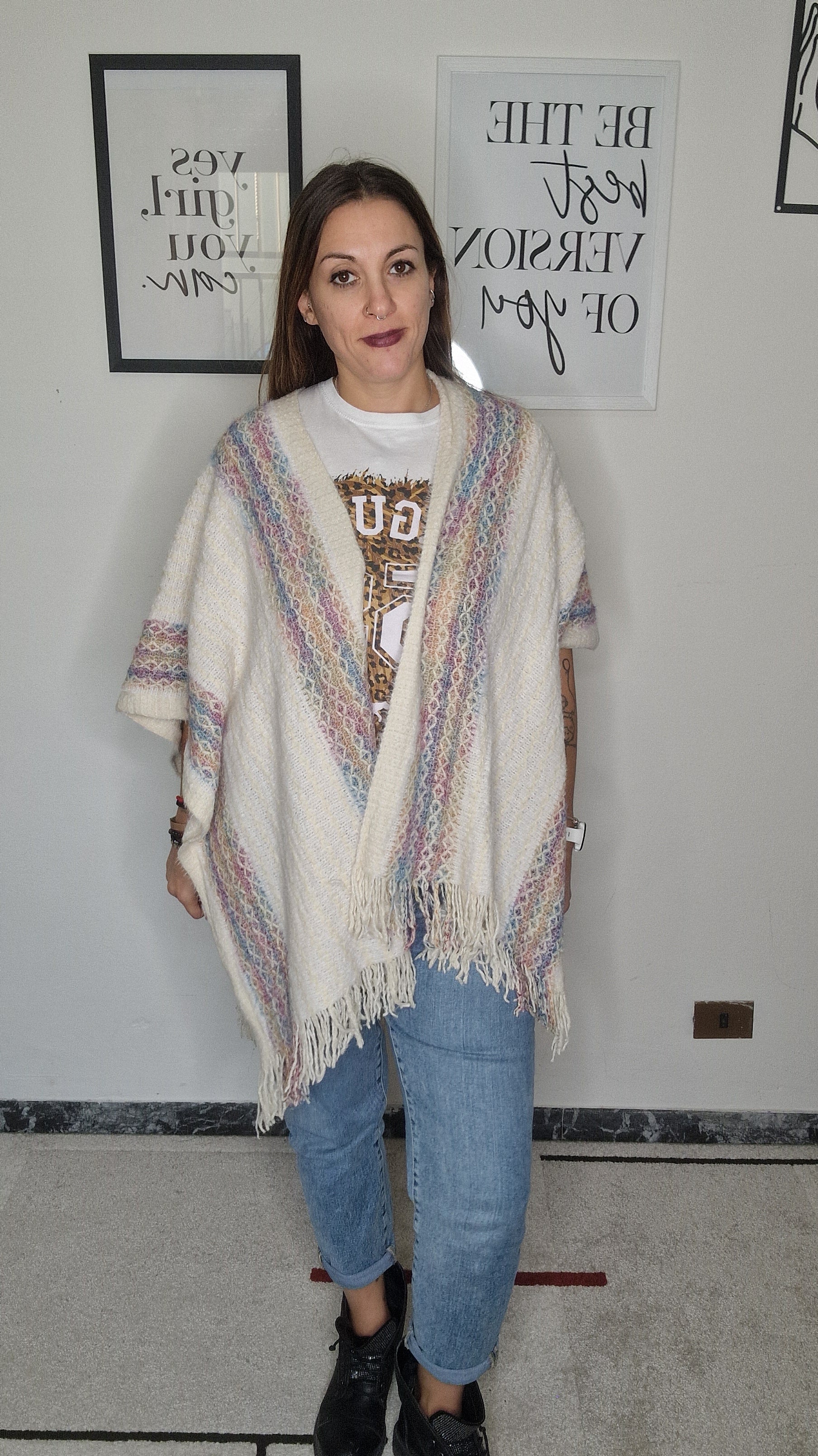 Poncho muticolor con frange