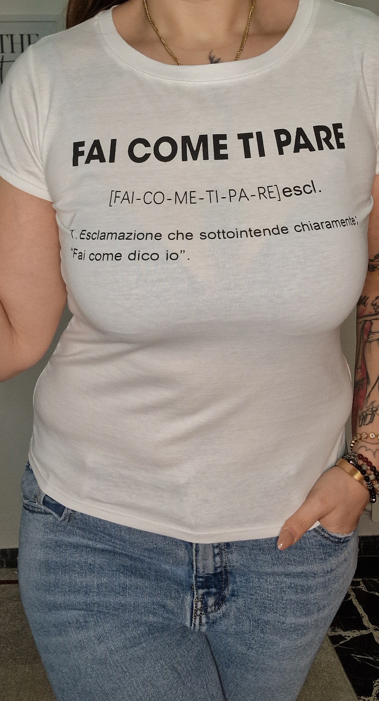 T shirt in cotone, con scritta in stampa laser, taglia unica veste regolare fino alla 48.