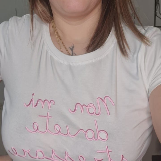 La dolcezza dei colori pastello incontra la massima sincerità. Questa T-shirt non è solo un capo d'abbigliamento, ma una dichiarazione d'intenti ricamata. Perfetta per chi ama i toni pastello ma non rinuncia a mettere le cose in chiaro con un pizzico di ironia.